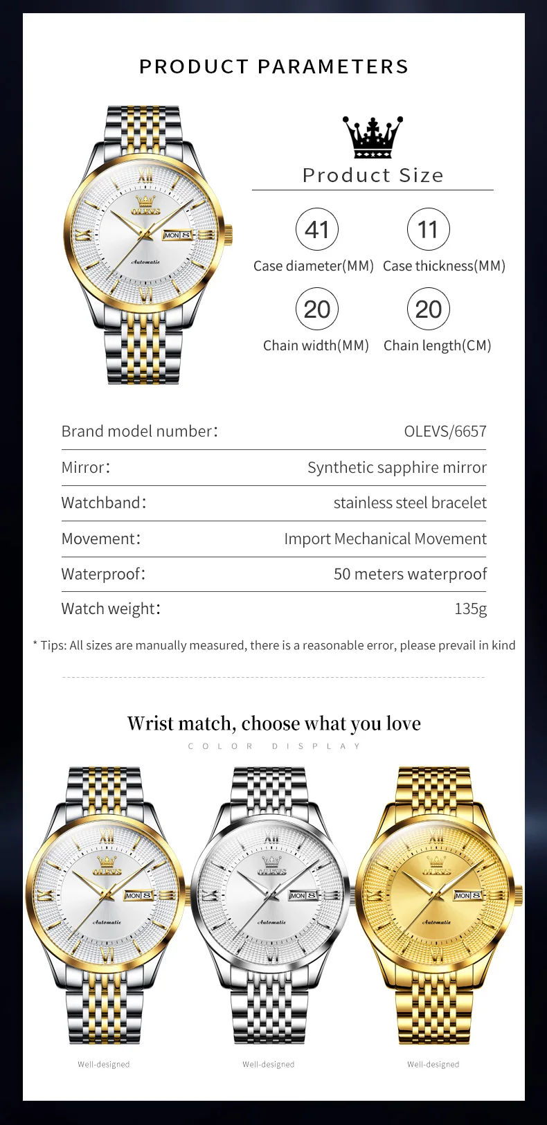 OLEVS 6657 ORIGINAL MECHANICAL DAY & DATE MEN'S WATCH